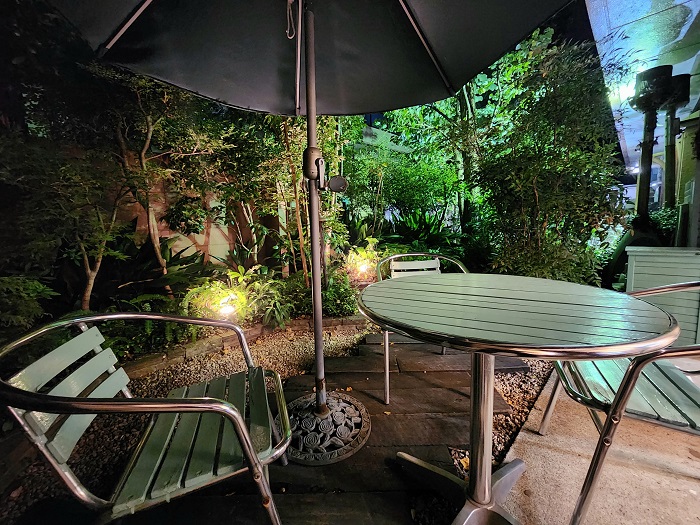 (photo: グラスミュゼ裏庭より。店長が思いついたように久々に裏庭をライトアップしていたことから今日の1枚に採用です)