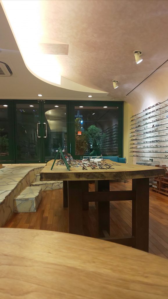 (photo: 写真左側の段落ち照明から眼鏡のあるガラス棚へと続く隅の曲線がお気に入りポイントです)