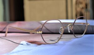 この裏庭で、楽しくも真剣にメガネ選びのひとときを過ごされる仲良しのお二人組の姿がとっても素敵だったので。ガラス越しの様子に思わず妹や旧友のことを重ねてしまいました。相手を想って一緒に吟味しあうのは本当に素敵です。