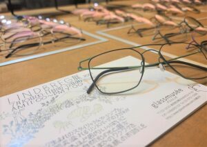 ②について、「レンズを入れて掛けたときに最高に美しいメガネ」をお楽しみいただくためにはレンズ(度数)情報も大きな要素になります。ですが同時に、フレーム選定の段階では過去の視力測定データからオススメのフレームの傾向を見定めることが可能ですから、あとでゆっくり視力測定という選択肢も有効になります。尚、グラスミュゼにはじめてお越しの方にはお手持ちのメガネの度数から同様のことが可能となりますので、どうぞご安心ください。