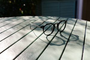 青みに水色*にわかにパープルが惹きつけて離さないラウンドのセルフレームが