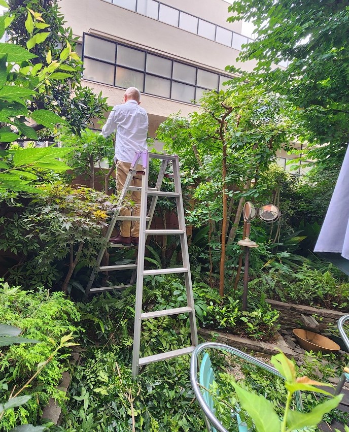 今年度から毎月第3週目に連休をいただくようになりましたが、昨日の定休日は久しぶりにご褒美ランチをいただいてから一路ミュゼへ。ここしばらくずっと気になっていた裏庭の剪定dayとなりました。このところの猛暑も一休みの曇天で、作業も捗りお陰様でスッキリ!