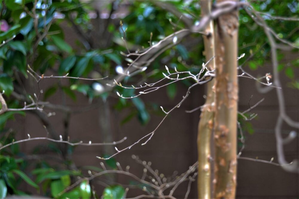 ミュゼ裏庭のヒメシャラ、蕾は日ごとに膨らんで
