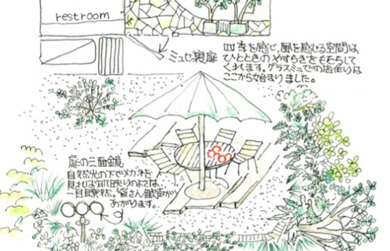 (photo: ホームページのshop insideページでグラスミュゼ店内の楽しみ方を店主がイラストでご案内しています。よかったらご覧くださいね)