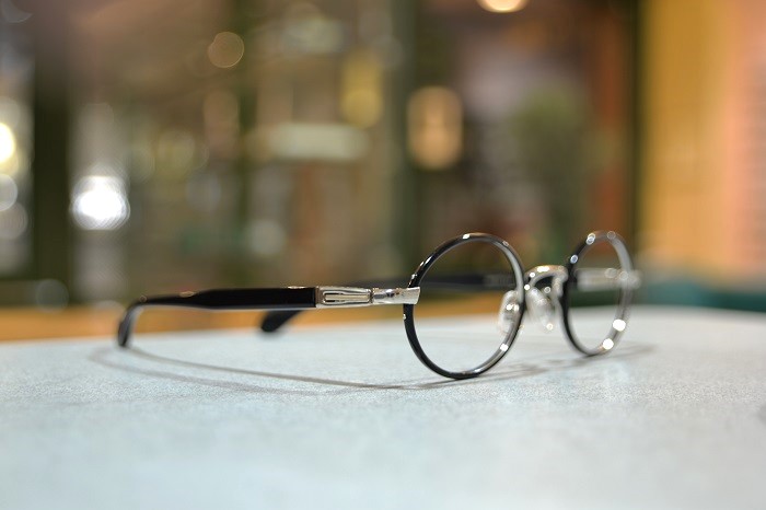 今日の1本は、ピカピカのシルバー色に艶めく黒色のセル巻きで見事にお化粧された杉本圭の逸品です。このモデルに限らず丸眼鏡と言っても、実際には真円ではなく少しだけ扁平にするなどしていることが殆どですが(真円にしてしまうと目の錯覚で縦長に見えてしまいます)、温もりのある丸さのなかに僅かばかりのシャープさを感じるところもまた杉本圭らしくて味わい深い1本です。