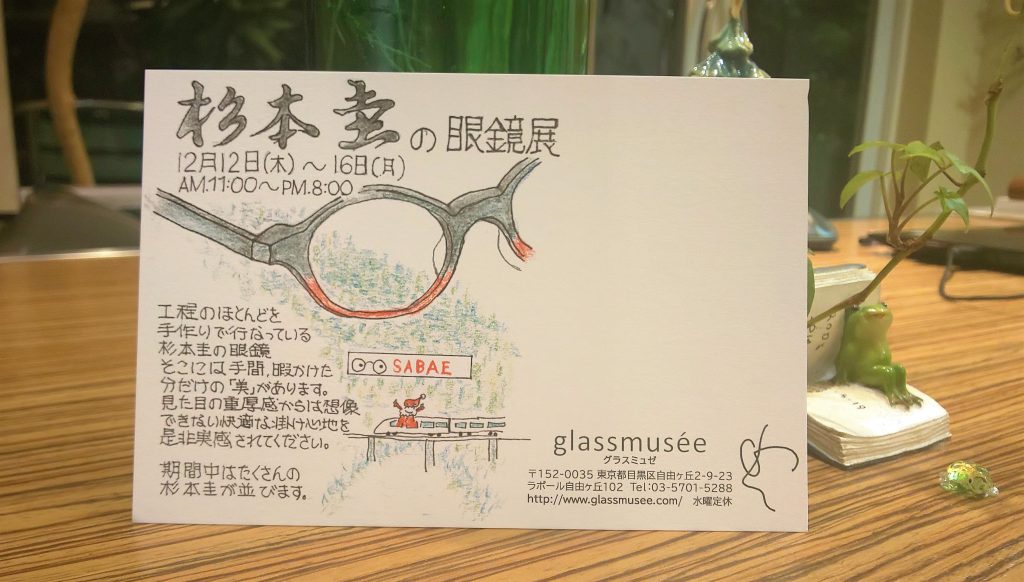 11月の福井路*杉本圭への旅を経て、いよいよ来週から開催となります杉本圭展では、豊富なモデルごとに、王道の艶めくブラックや杉本さんらしさが光る青&ハバナ(いわゆるべっ甲のイメージ)はもちろん、いつもは見られないお色味などカラーバリエーション豊富に取り揃えてご用意させていただきました。杉本圭デビューの方にも、2本目・3本目の方にもアセテート、チタン、ウッドと素材を変えても一貫した杉本圭の美学をここグラスミュゼでご堪能いただけましたら幸せです。
