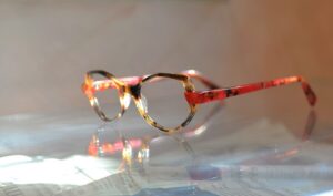 柔らかみのある形をしたチタンとアセテートで組まれた