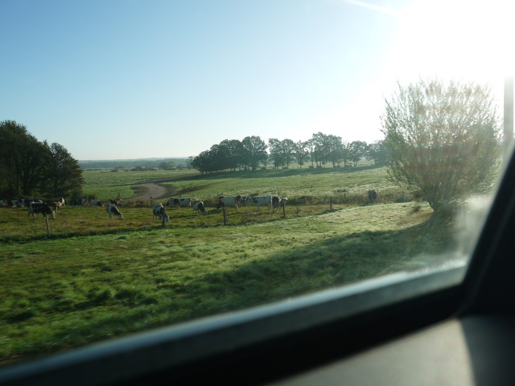 立ち込める朝靄。真っ白な景色はだんだんと晴れていきましたが、9時を過ぎてもまだしばらくは遠くに残ったまま。牛を見てはJura名産のチーズであるコンテやモルビエを思い出したり、途中キャベツ畑もありました。(モルビエはTRACTIONに来てそのおいしさを知った大好きなチーズ、コンテ好きの方には是非おすすめです)