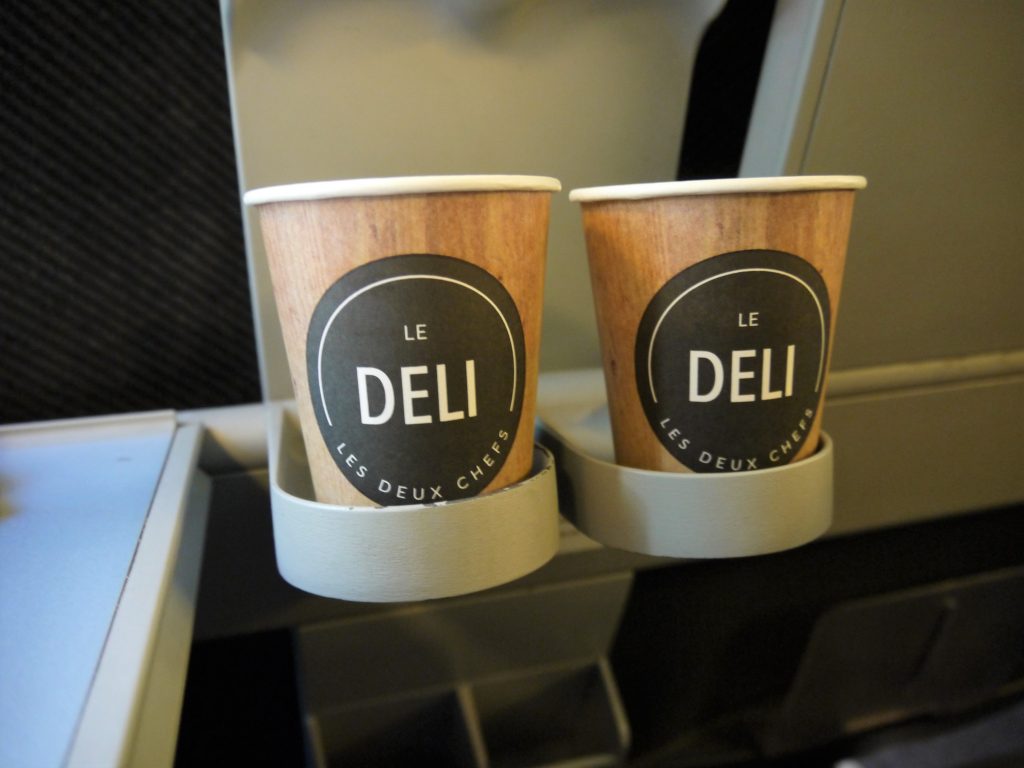 一杯ずつ落としたてのコーヒーとブリオッシュと流れていく車窓を満喫。(新幹線と同じようなイメージのワゴンで一杯ずつ淹れたてをサービスしてくれたのには驚きました。なかなか進まないのですが、でも待つ甲斐ありのおいしさです)