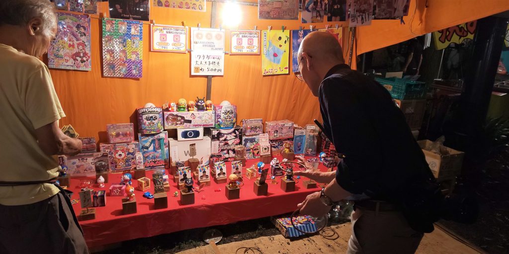 (小さな女の子には多分あたり用のキティちゃんをあげている素敵な夜店でした。