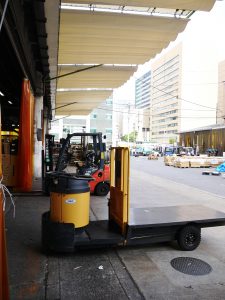 写真は運搬用の乗り物で、ターレット(通称:ターレ)。