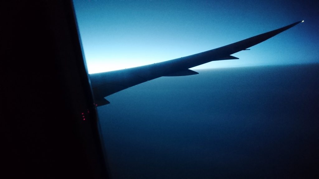 (photo: 刻一刻と移ろう色彩の空。日本へ向かう夜明けより 2017)