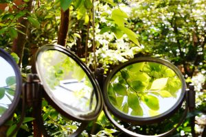 裏庭の三面鏡で自然光にかざして是非ご覧いただけたら嬉しいです。