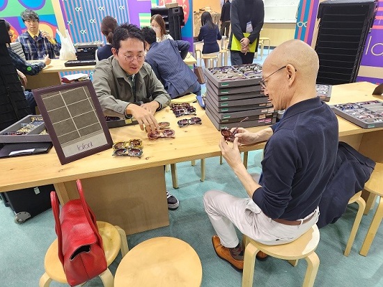アニバーサリーイヤーの今回は、オートクチュール刺繍と眼鏡のコラボレーションというlafontでなければ誕生し得なかったに違いない作品との出会いがとにもかくにも心に残りました。国家最優秀職人章(フランス)をお持ちの関元聡さんも、パリの展示会から間もないというのに来日されて会場でその技を至近距離で見せてくださるという贅沢さ。あまりの素晴らしさに時間も忘れて拝見していたら気づけば私だけになっていて・・・心からの感謝をお伝えしました。