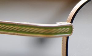 テンプル(耳にかけるツル)は色鮮やかな抹茶のお色味。