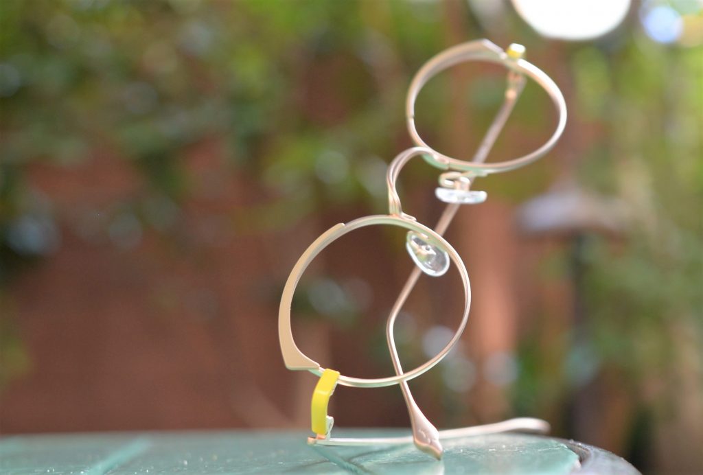 マットゴールドのベースに肌色に馴染むブロー部分のベージュと、白眼を綺麗に引き立たせてくれる鮮やかな黄色のコントラストがとっても素敵で思わず目を引く配色はじっくり眺めていると益々素敵に。繊細なラインが滑らかに重なってニュアンスたっぷりのブリッジ(鼻の部分)と、お写真では分かりにくいのですがテンプル(つるの部分)の形状&あわせ方もかなりの魅力です。