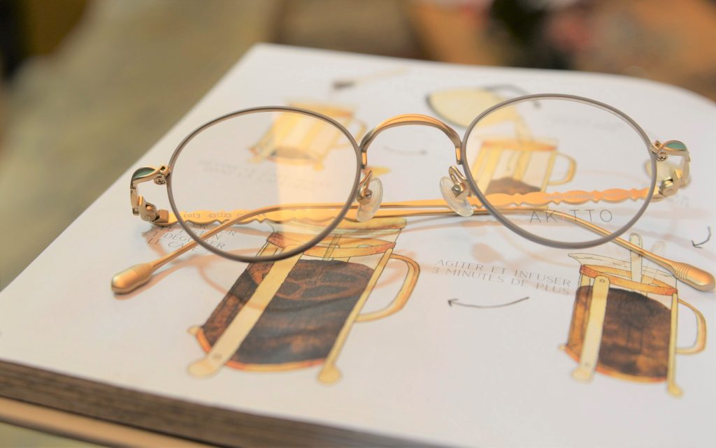 グレージュ*くすみのエメラルドグリーン*マットゴールド、こんな配色のメガネはAKITTOだからこそ。大人可愛い女性が好きなものが分かってしまうなんて・・・本当にずるいです(笑)。