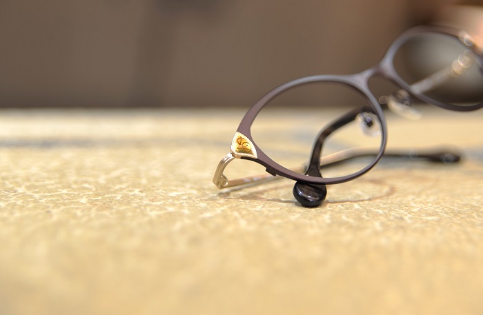 そんな今日の1本は秋色のAKITTOから。両サイドに施されたジューシーな仕上がりの七宝が、振り向いたときにはピアスのようにも見えてお楽しみいただけそうです。川上さんらしくテンプルと、七宝の装飾をぐるり囲んだミルグレイン(ジュエリーで使われる細やかな点描の技法)も柔らかな秋の陽差しによく映えます。