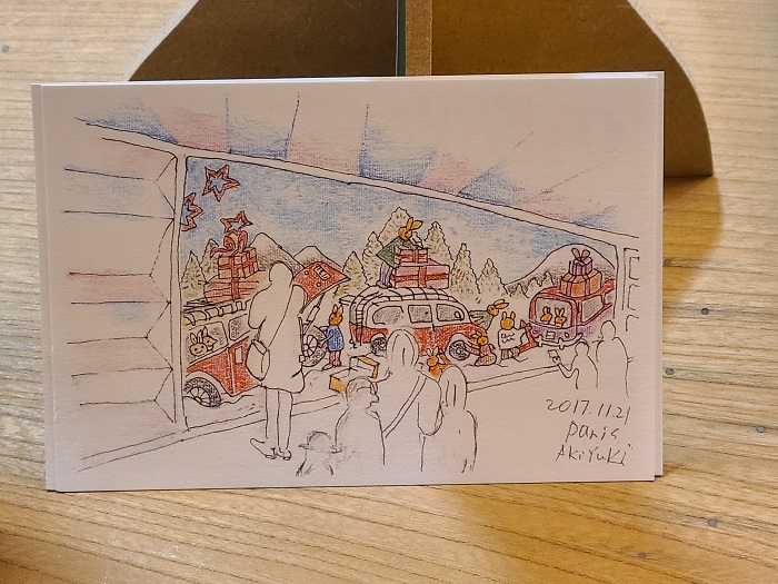 本日の1枚は今回のご案内状の裏面から。例年秋のフランス出張をこの年はクリスマスシーズンにずらして行ったときの思い出がイメージソースになっています。ちなみに、ロゴマークの横顔をはじめミュゼのイラストは全て店主の作品です。(一見怖そうですが?!イラストはこんな感じです^^)