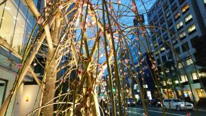 木の温もりと真っ白で爽やかないつものフロアがライティング&BGMで新鮮な雰囲気のなか、