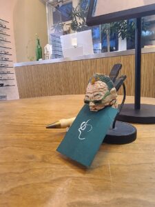柔らかい玉形と細身のテンプルで印象に残る形です。