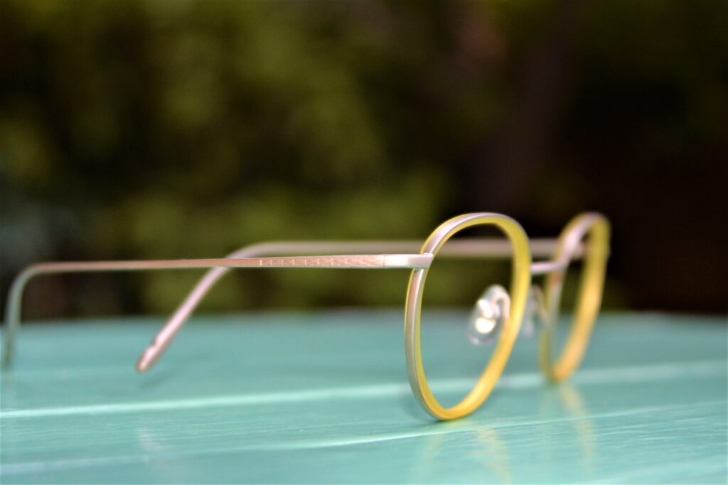 メタル枠にアセテートのリングを組み込んだ