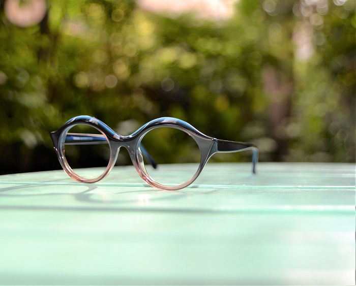 触れてみると心地いい滑らかな曲線に磨き上げられたアセテート生地、写真ではグレー系のお色味がメインで次いでブルー、ピンクを見てとることができます。