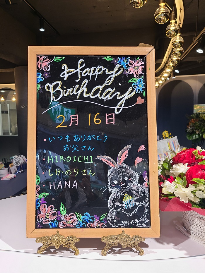 (photo: ウサギさんが可愛い華やかなメッセージボード。こんな風に一緒にお祝いしてくれるところも大好きです)