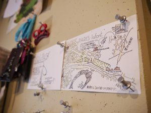ブティックを訪れたときの様子を店長が描いたものになっています。