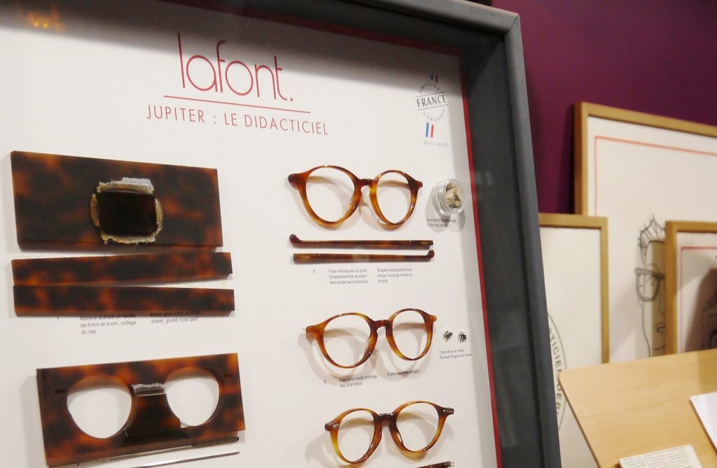 JUPITERというモデルを使って、眼鏡フレームができるまでを表したディスプレイ )