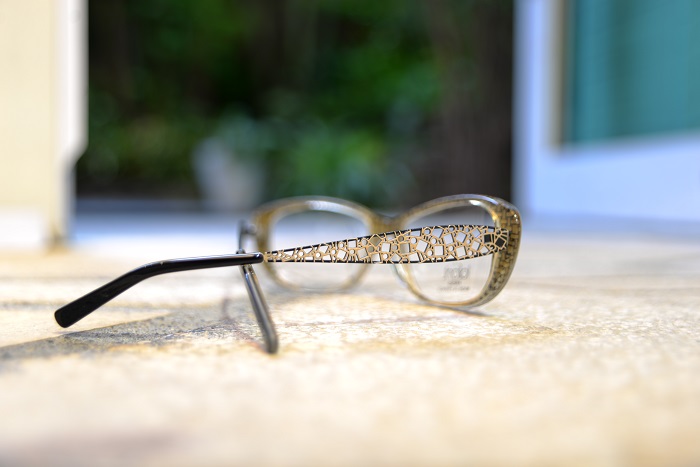 レースのようでもあり、はたまた現代アートの香りも感じられそうなテンプル(つるの部分)が印象的なlafontのモデル。