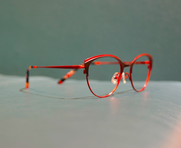 赤と黒の配色を活かしたラフォンのメタルブロー、