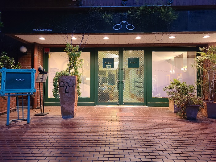 (photo: LINDBERG本国のデザインチームで作ってくださったラッピングフィルム、採光をしっかり確保できるグラスミュゼ仕様に今回も作成いただきました。夜にはこんな風にニュアンスたっぷりでお昼間とは違った素敵さがありました)