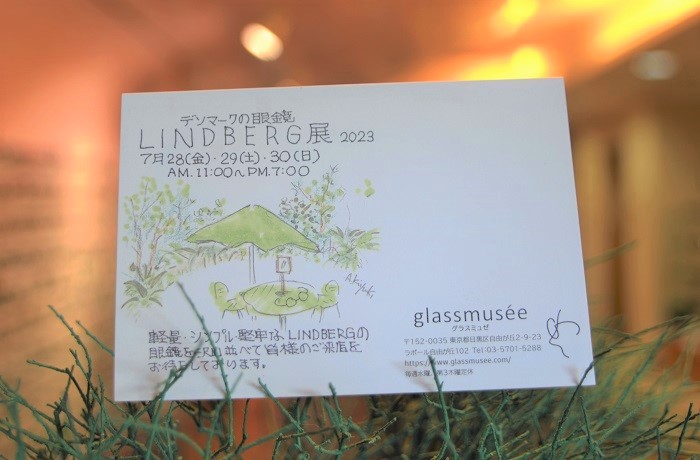 店長のイラストも仕上がり校正&印刷、そしてご案内状が完成しました。描かれているのはグラスミュゼのシンボルである裏庭ですが、こんな風に眼鏡選びのひとときをお楽しみいただけたらとのメッセージも込められているようです。