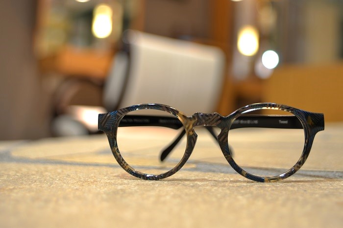 今秋の展示会でリリースされたものですが、会場で目に留まったのは偶然にも!リズミカルな光が楽しい茶系&ブルーの生地柄でした。