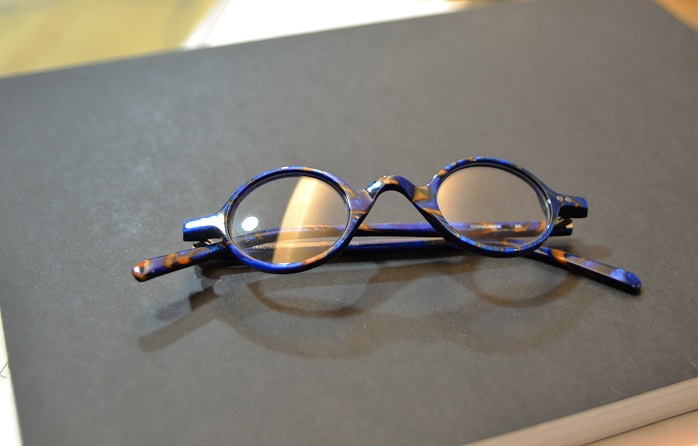 いつまでもなくならないでほしい、なくならないに違いないと思っているTRACTIONの丸眼鏡ファミリーより、CORBUSIER。カラーバリエーションが特に多いモデルのなかで、艶々のブルー&黄土色(アズーロ・エ・マローネの配色)が独特のニュアンスをプラスしています。写真の補正ではなく実際もシルクのようなツヤ感で眺めているだけでも既にうっとりする美しさは、コーディネートのキーアイテムとしてもきっと大切な1本になってくれるはずです。
