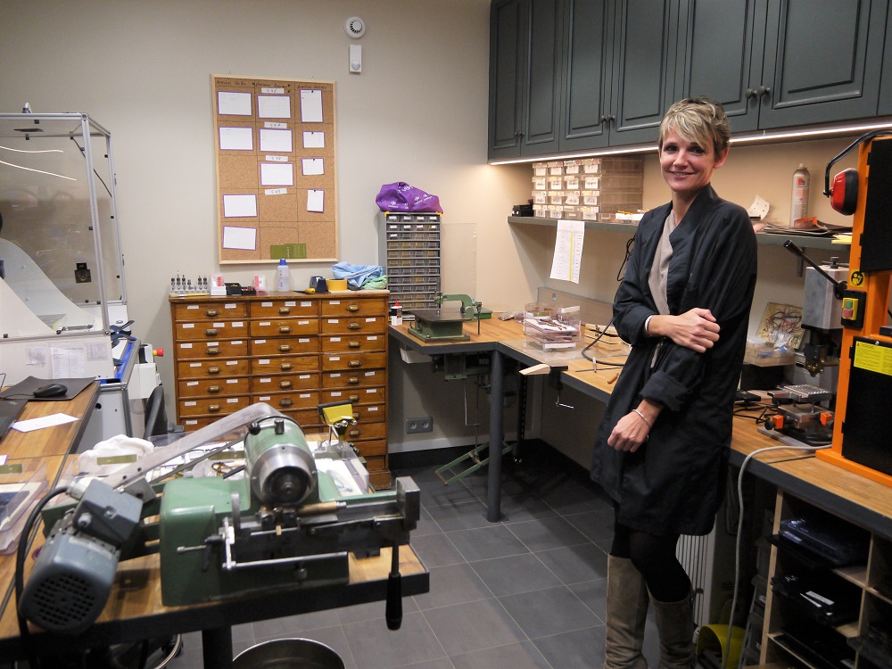 ちなみに、お写真にはないのですが、地下にはハンドメイドの木製の小さなガラ(磨き用の装置)もありました。温度や湿度が管理しやすい空間で、好適なのだとか。