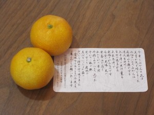 こちらは残暑お見舞いにとお送りいただいた和歌山県は有田のみかん(宮川早生=みやがわわせ) 今日はスザンヌさんはお休みなので店長に少しだけですがお裾分けしました 懐かしいみかんのお味・・・でも、初めていただく美味しさでもありました♪ 立秋に寄せて私のことを思い出してくださったのだとか とても嬉しかったのとあわせて、日本の心を感じる素敵な贈り物でした 贈り物に迷ったときには 自分ではあまり買わないかも?だけれど興味はあるな~ というようなプレミアムな果物を是非! オススメです^-^v