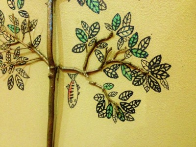 壁面にこっそり〝隠れイワナ〟を描いたのですが