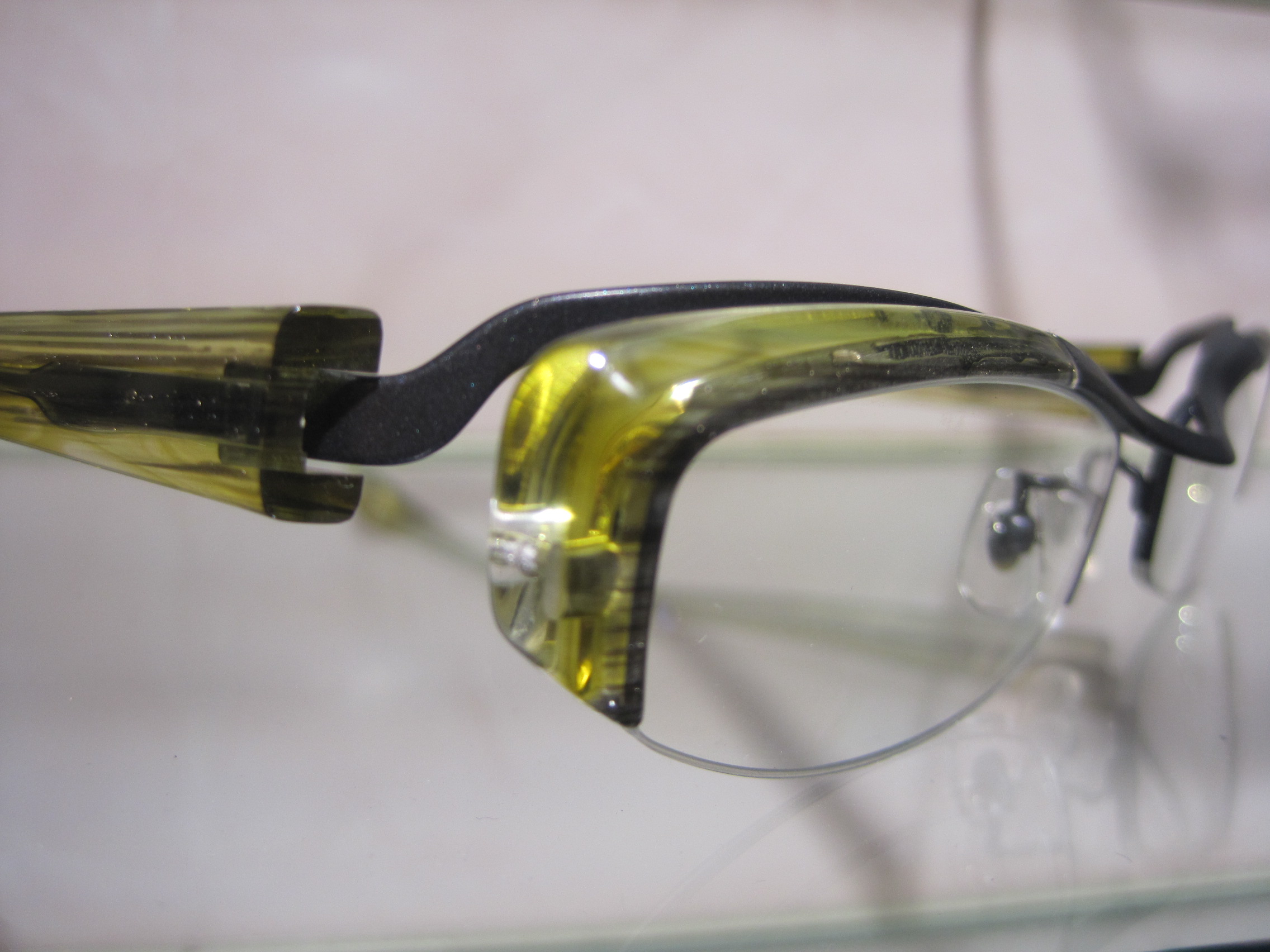 同品番のフレームをすべて並べた時の色のバランスはもちろんのこと、更にその中の1箇所だけ差し色が使われたところです。