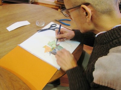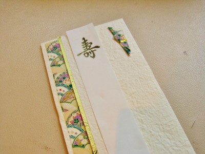 ご祝儀袋の水引きだけを抜きとって、何やら他の工作に使ってました