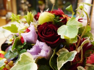 バラとガーベラ、姫リンゴにアイビー・・・小さなお花まで、