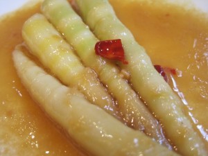 最終日に朝どりしてお隣のカスタネットさんに差し入れた根曲り竹が調理されて戻ってきました