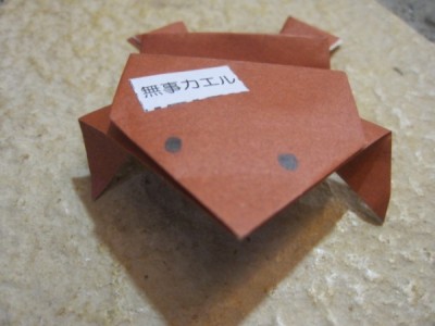 行きの東北道パーキングに置いてあった「無事カエル」