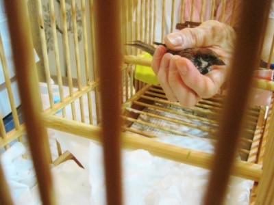 手の中でくつろぐ、ちゅんちゃん