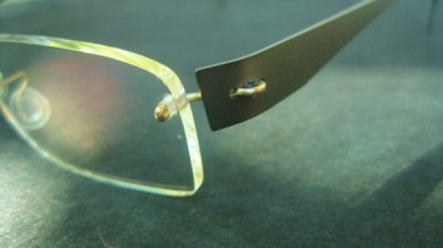 こちらはお客様のオーダーモデル。テーパーのテンプルは黒のつや消し、クリップ&ブリッチは金ピカ