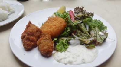 今日のランチはクリームコロッケとカキフライ☆