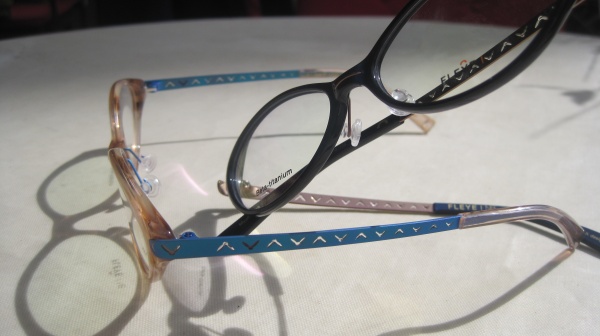 こちらは、ひと足お先にブルーを基調にしたメガネ。