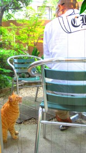 ふと庭を見ると、小茶からご飯を催促されてる!