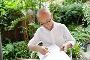 梅雨明け間近であろうミュゼのテラスにて作画中の店長をパシャリ。